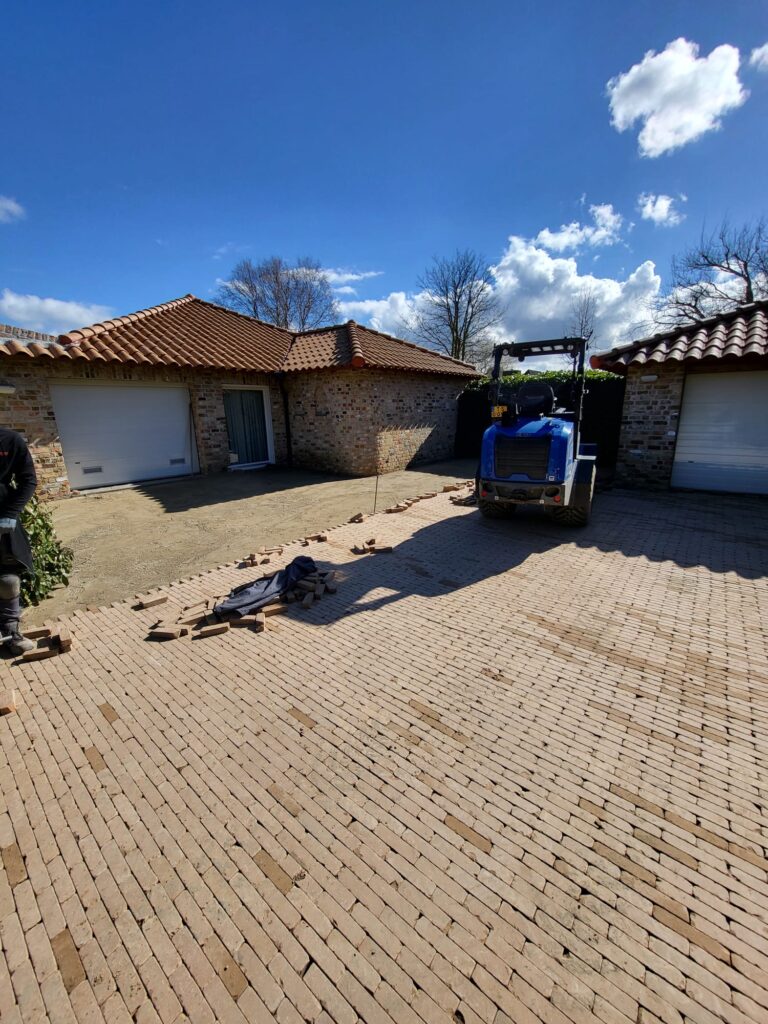 Hier hebben we de oprit vernieuwd, de oude beton straatstenen eruit en met nieuwe gebakken bestrating de oprit bestraat.